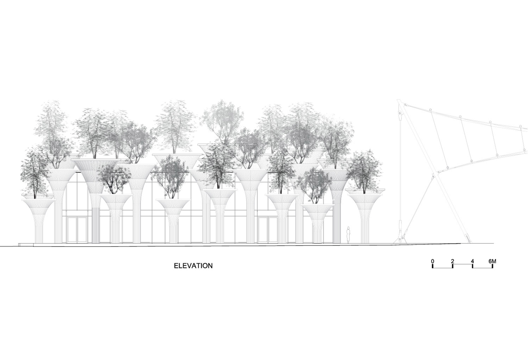 Due to the low construction and design budget for this pavilion, 2.08MUSD, the design costs were made voluntary. The exhibition is opened temporarily only six months therefore it is not feasible to invest a lot of money and energy in the building process. The pavilion had been realized as a building which has obtained many fruitful achievements by bamboo rapid re-production, trees planted in pots and reusable structure. We propose concept called “Building for trees” for future cities which give joy of the living to people.